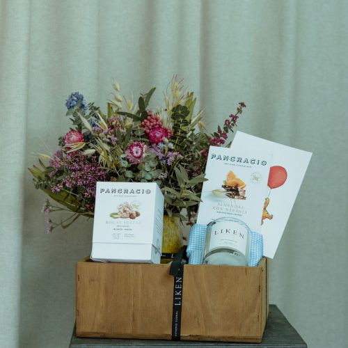 Con minirevista, tarjetón caligrafiado en pluma para personalizar tu regalo.